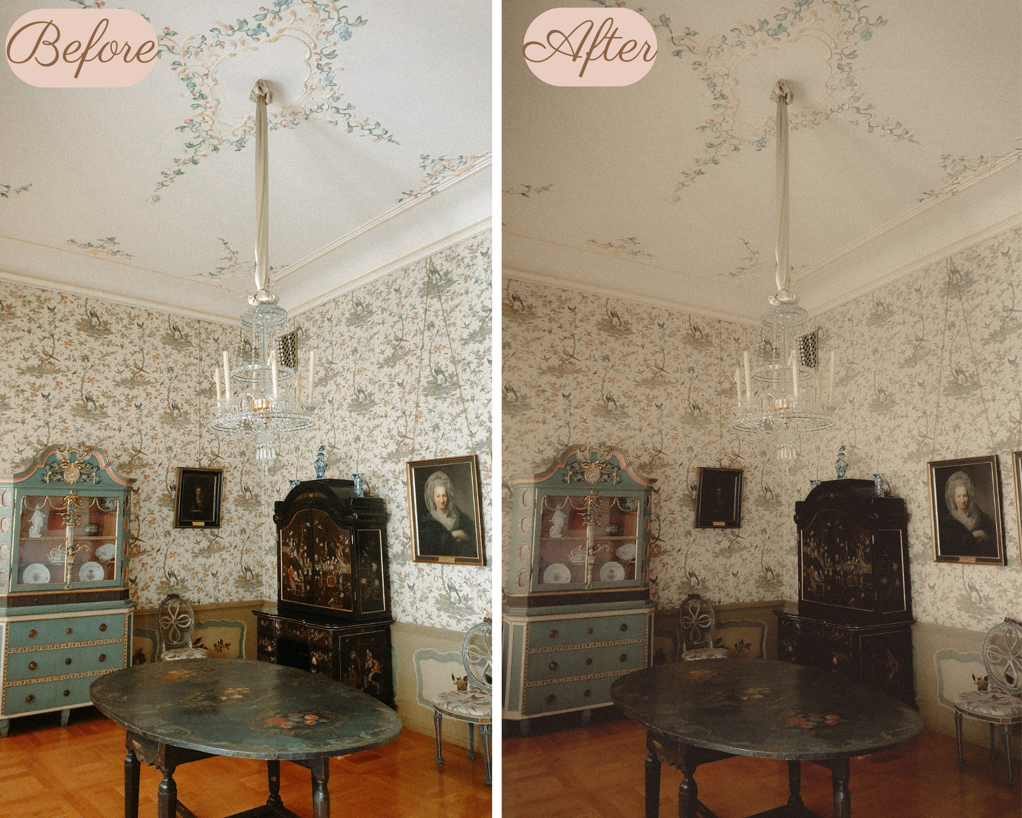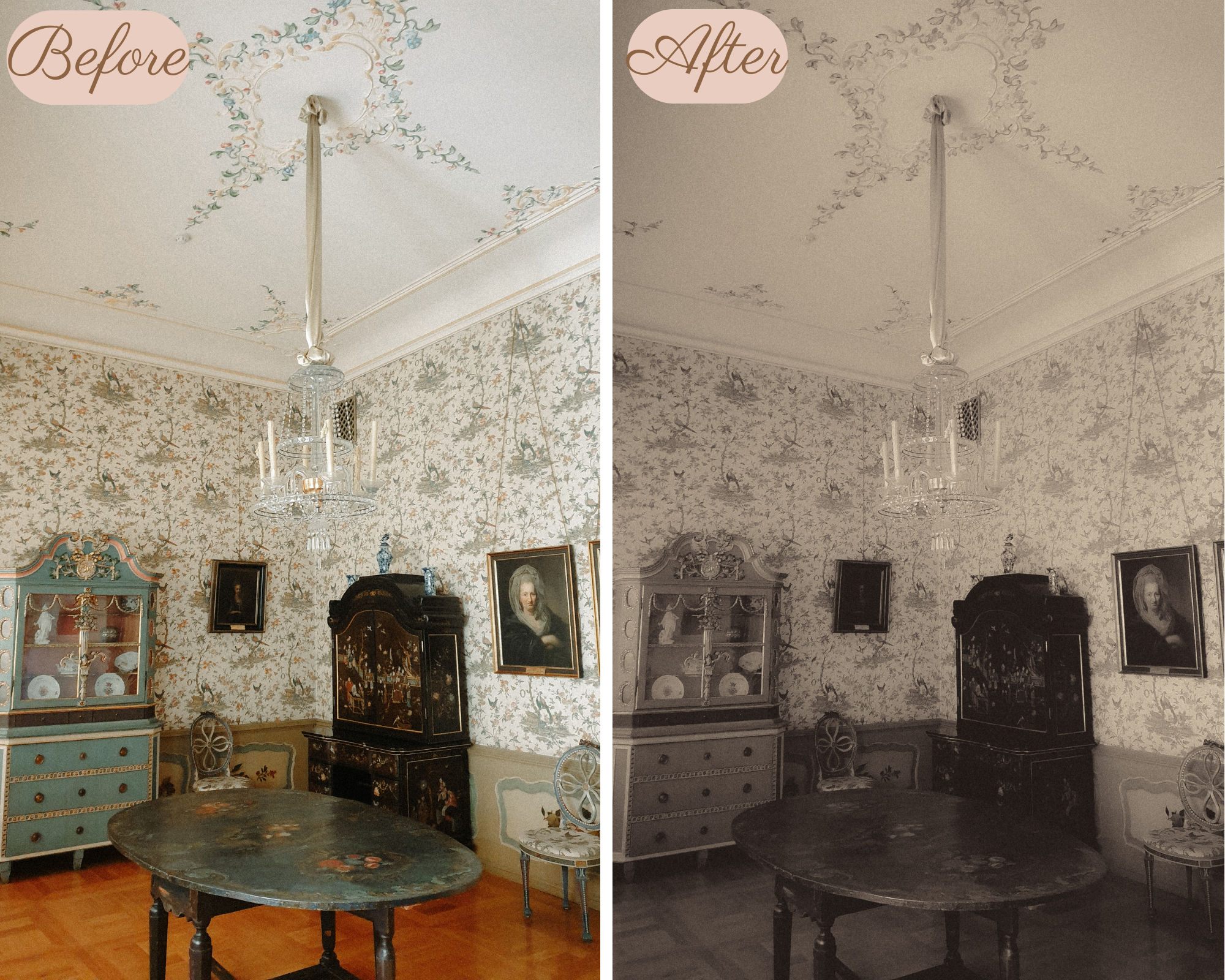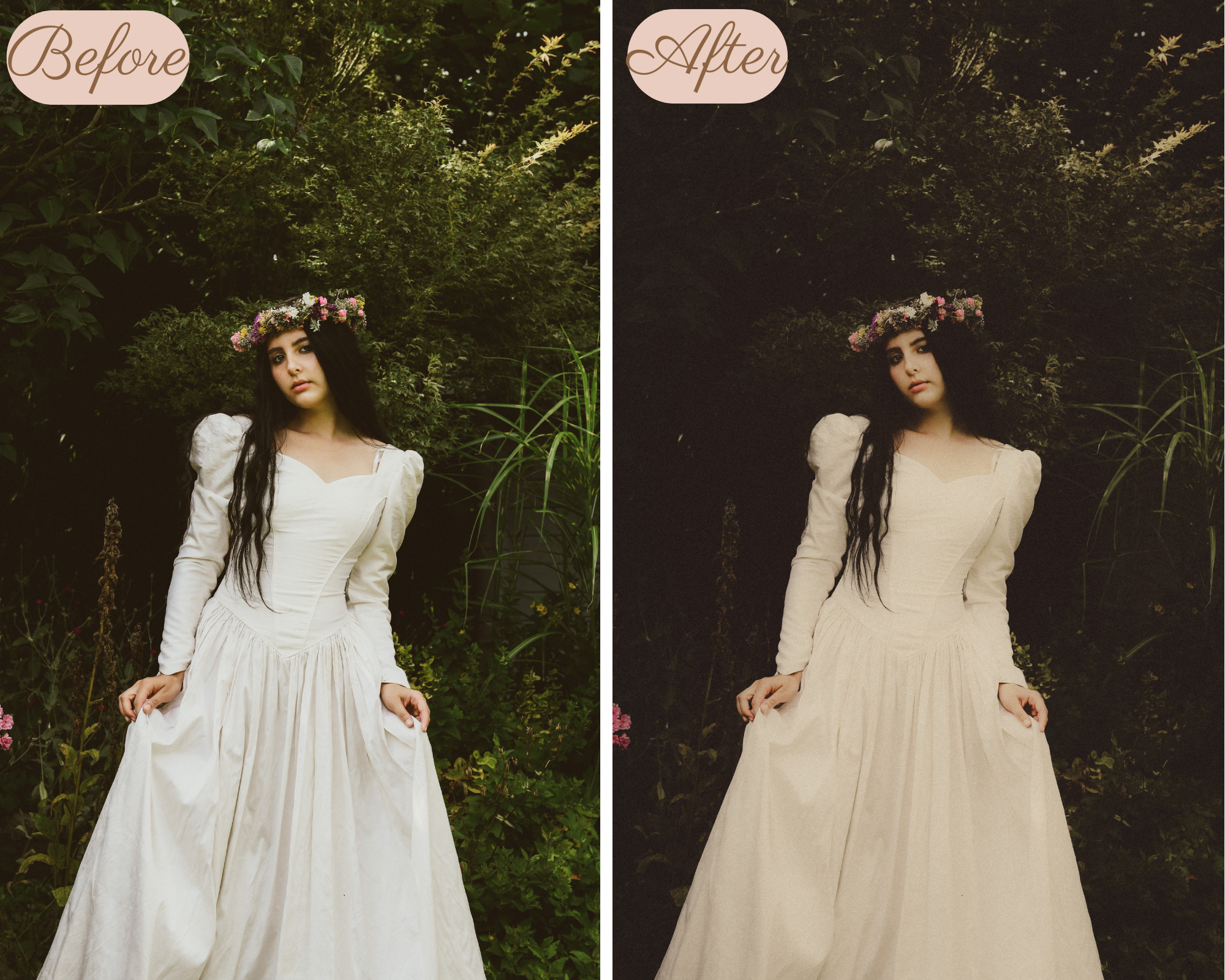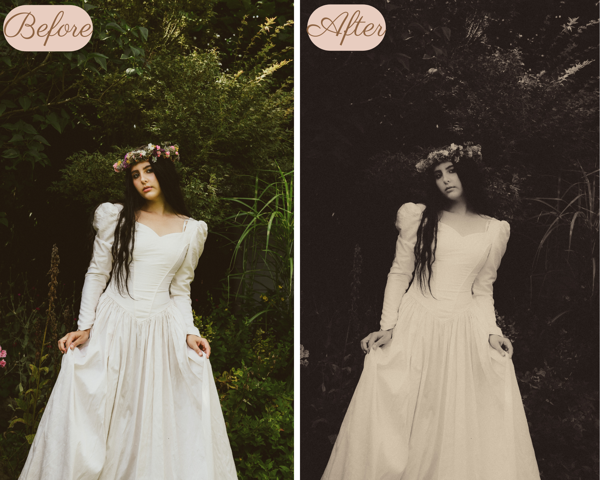 This preset will give your images a soft vintage look. Please note that the preset can vary from image to image so please be aware that some adjustments need to be made, for example the brightness.